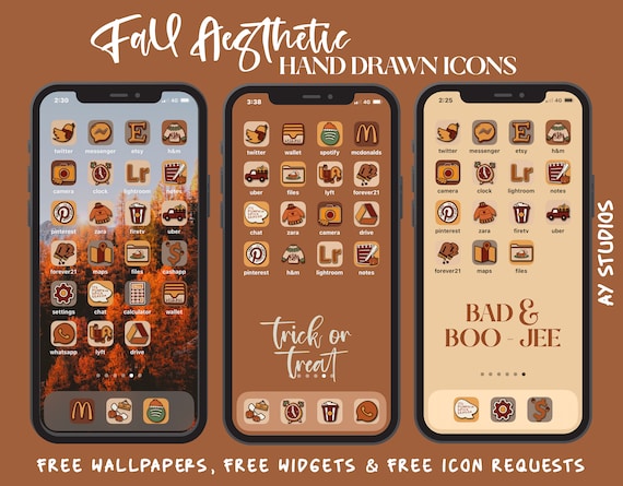Fall Halloween Ios 14 Ios 15 App Icons Aesthetic Bundle App Icons Widgets Bundle Hand Drawni Wedoaesthetic